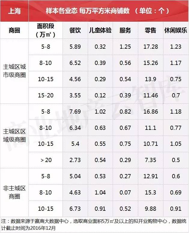 2017上(shàng)海(hǎi)拟開₹₩(kāi)業(yè)購(gòu)物(wù)中心樣本各業(§±yè)态每萬㎡商鋪數(shù)