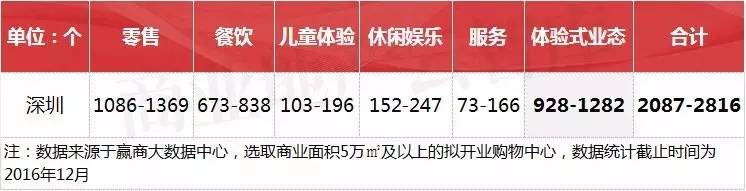 2017深圳拟開(kāi)業(yè)購(gòu)物(wù)中心各業(yè)态總需求