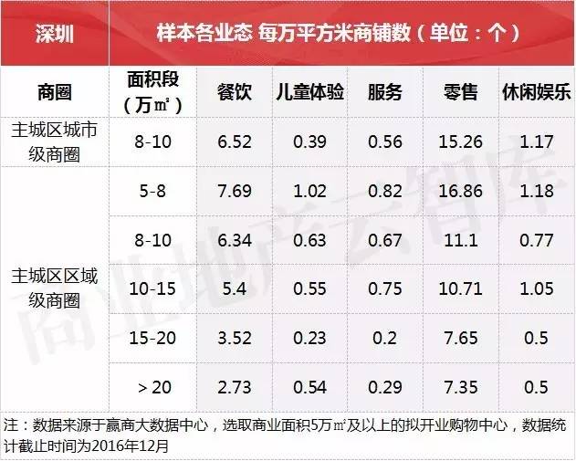 2017深圳拟開(kāi)業(yè)購(gòu)物(wù)中α× 心樣本各業(yè)态每萬㎡商鋪數(shù)