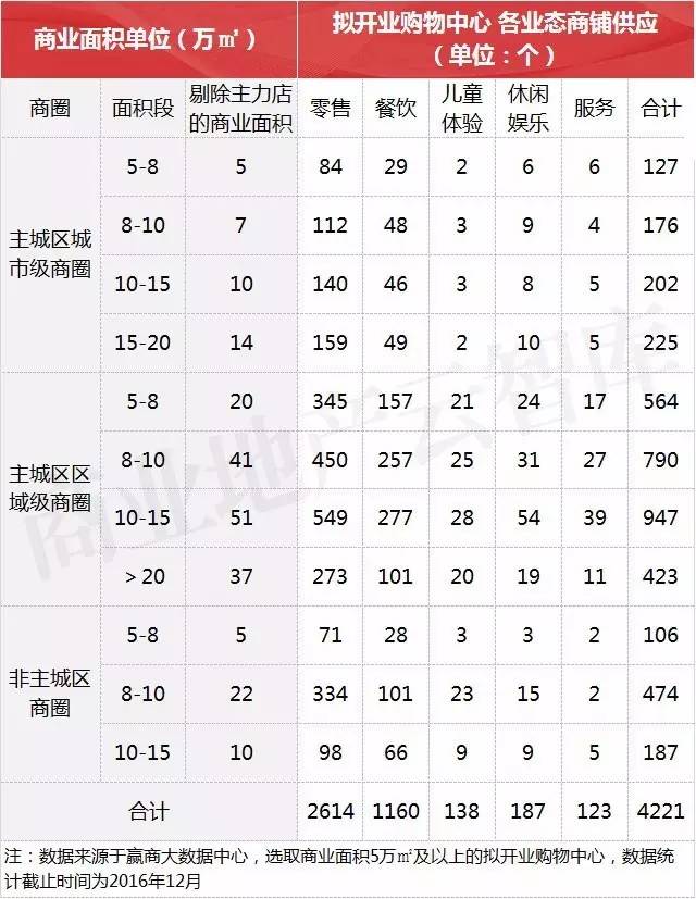 2017廣州拟開(kāi)業(yè)購(gòu)物(wù)中心各業(yè)态商鋪供應量推算←€π≤(suàn)表